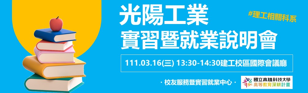 光陽工業實習暨就業說明會111.03.16(三)下午13:30-14:30 ,投遞截止日05.01(日)!!