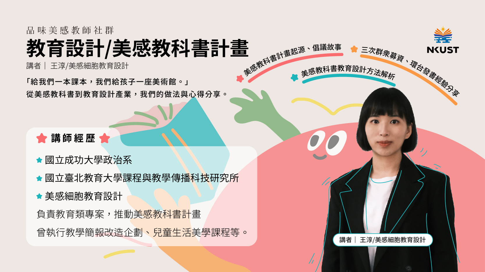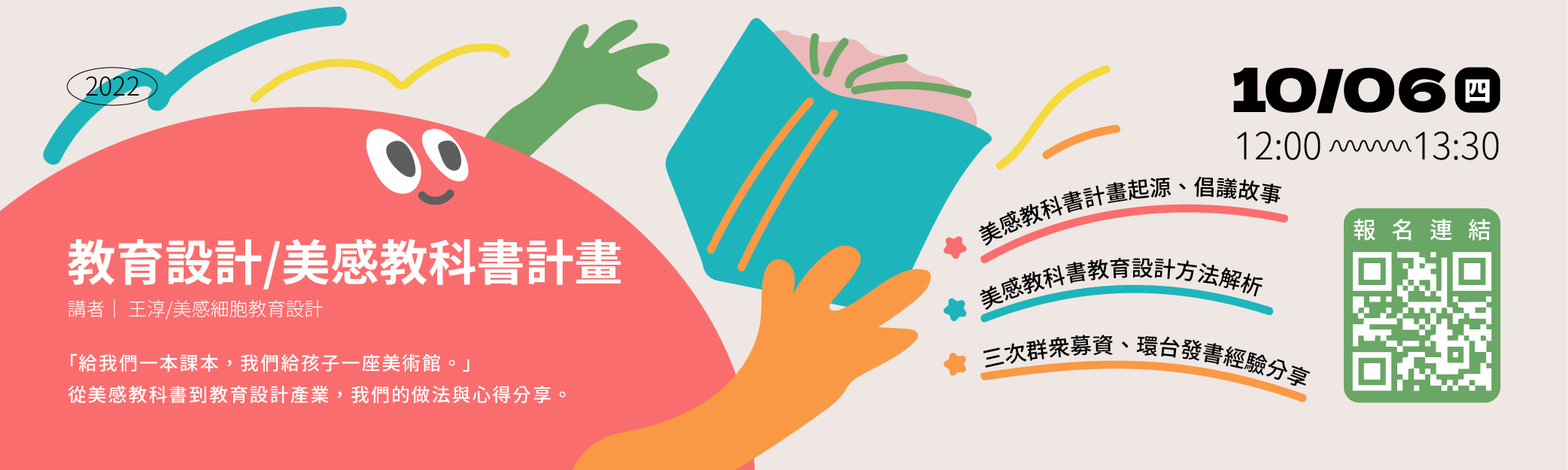 本次邀請觸動台灣美感神經,企圖透過課本影響一整個世代美感經驗的「美感細胞」設計經理王淳講師分享推廣甘苦與執行經驗,敬邀預留時間線上參與!