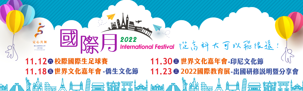 November 30 (Wed) 12:00-14:00 Nanzih Campus - World Culture Carnival II