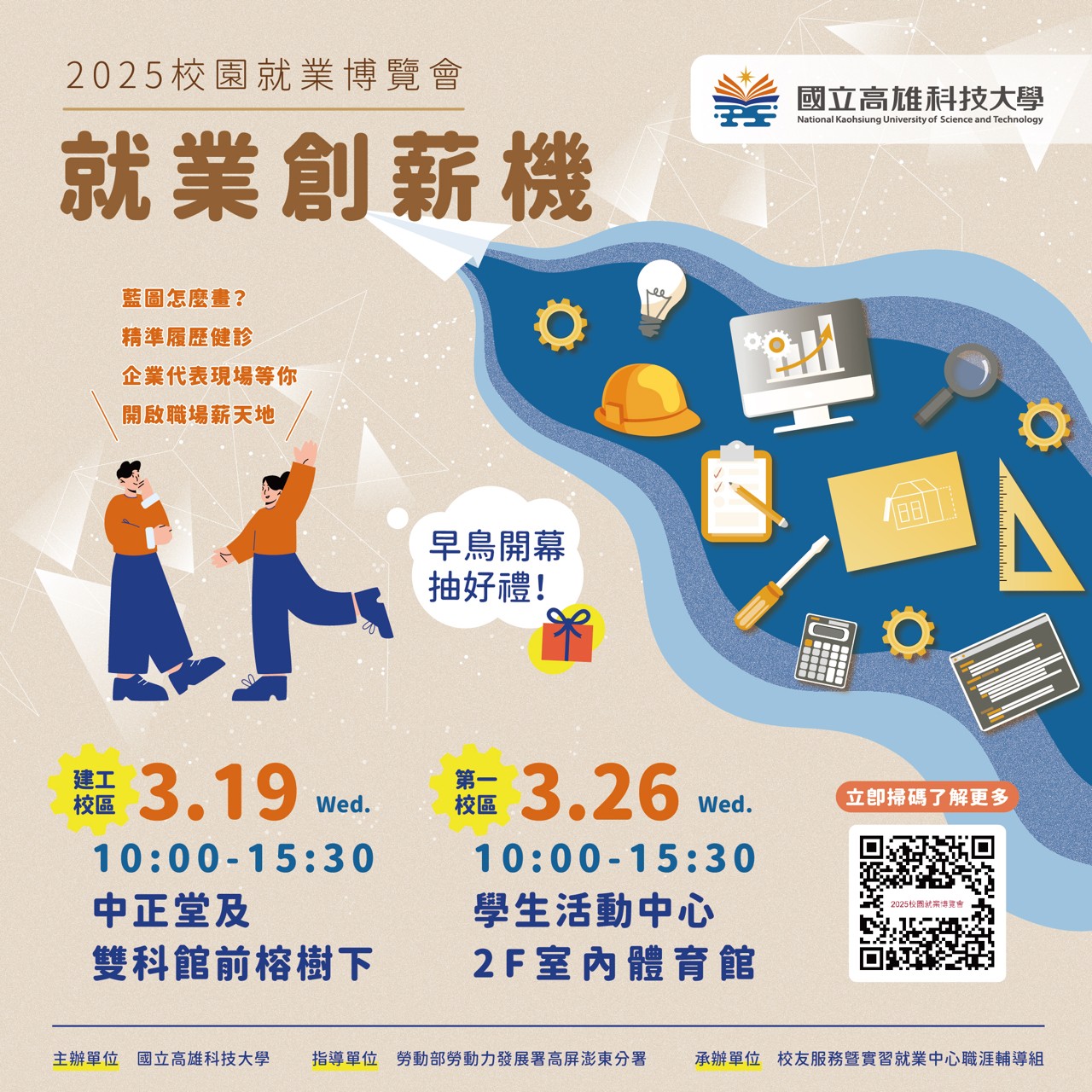 第一校區 學生動中心2F室內體育館 顯示地圖 隱藏地圖 2025-03-26(週三) 10:00~15:30 學生教師職員校外人士