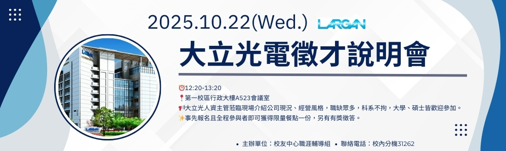 🎉【2025.10.22 大立光電徵才說明會】盛大登場!