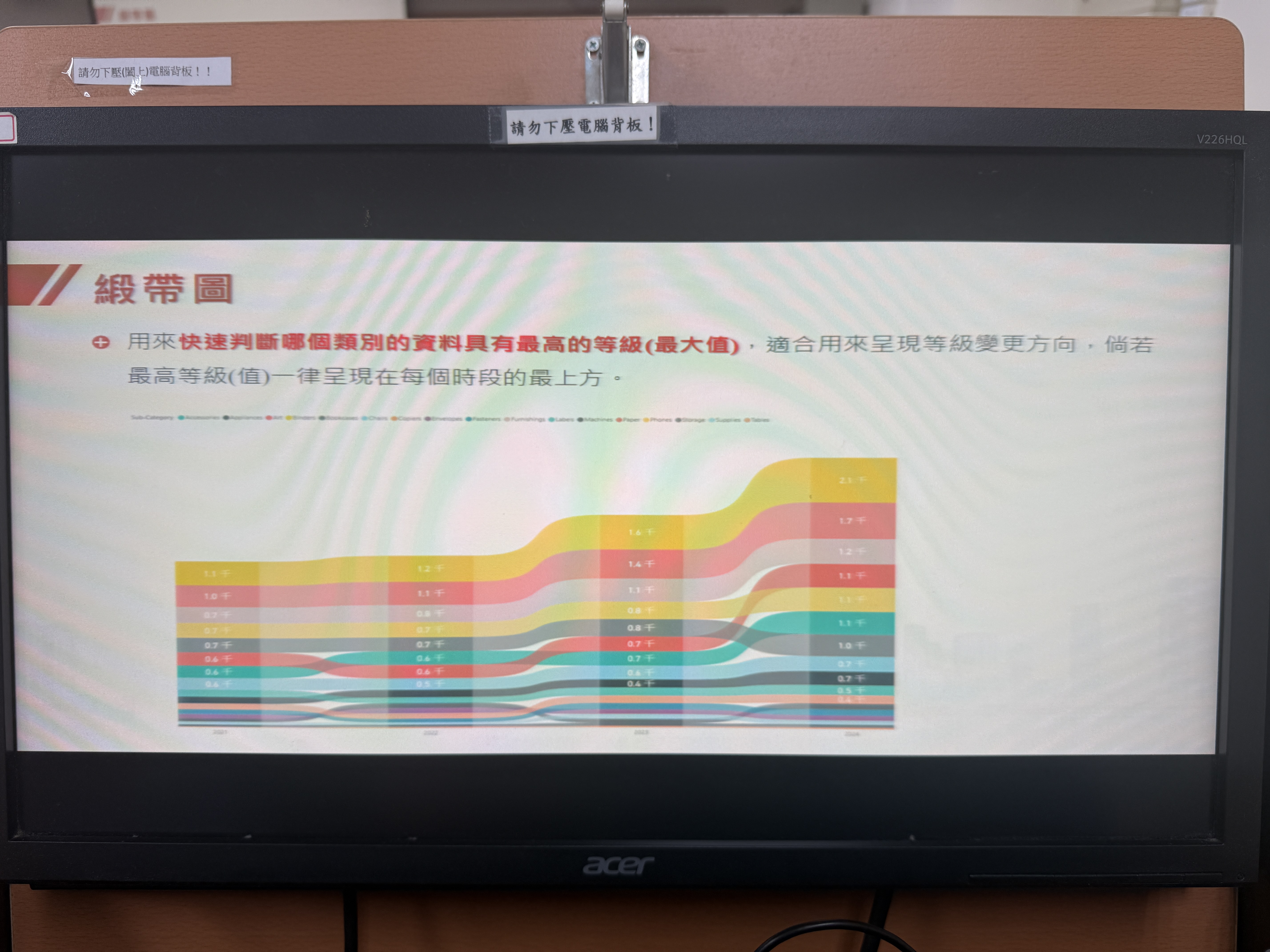 - 提供實務數據,課程直接實作完整的視覺化應用成果 ,學生也及時操作一次 。