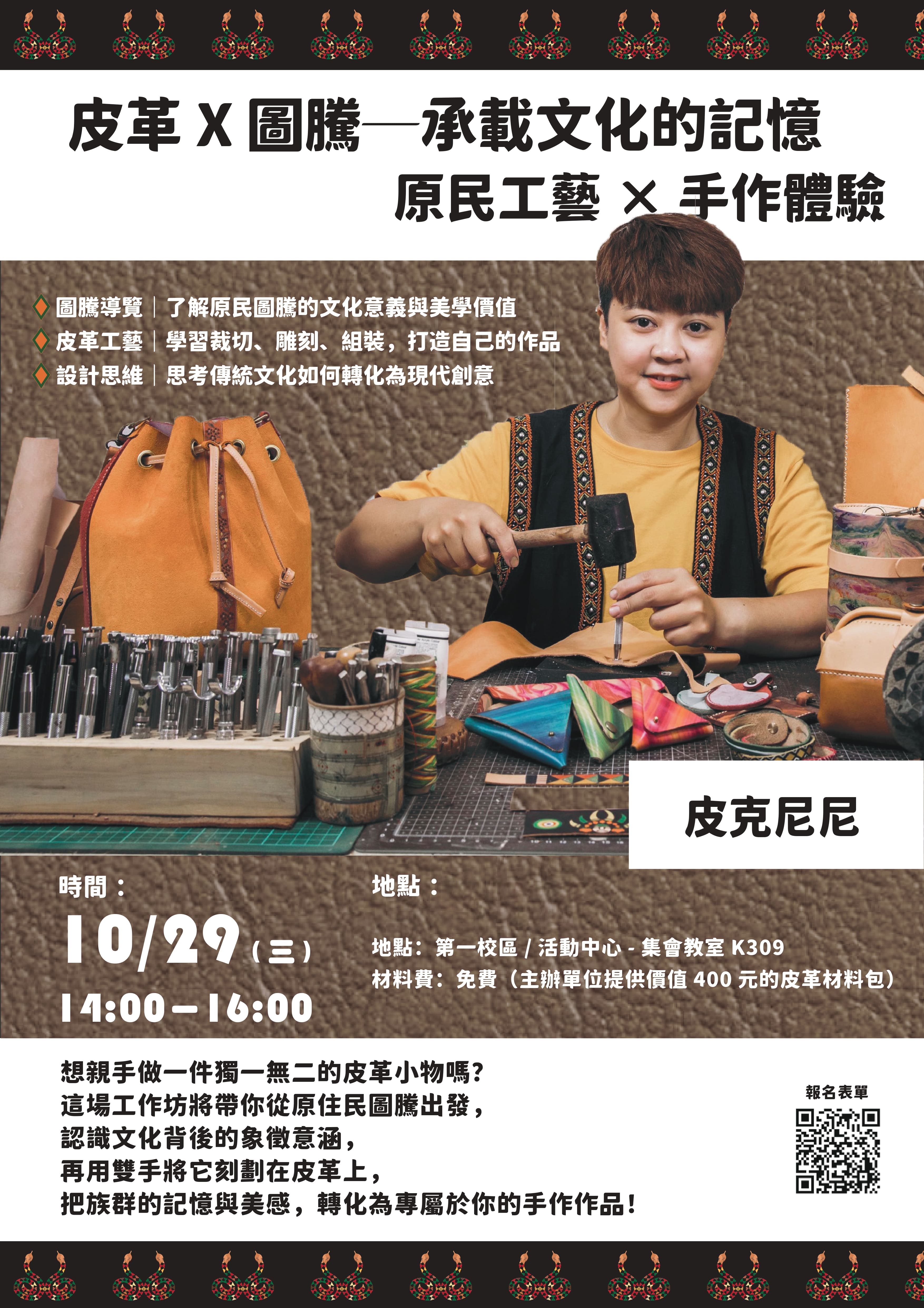 第三場次:10/29皮革 X圖騰──承載文化的記憶(https://reurl.cc/koMz7L)