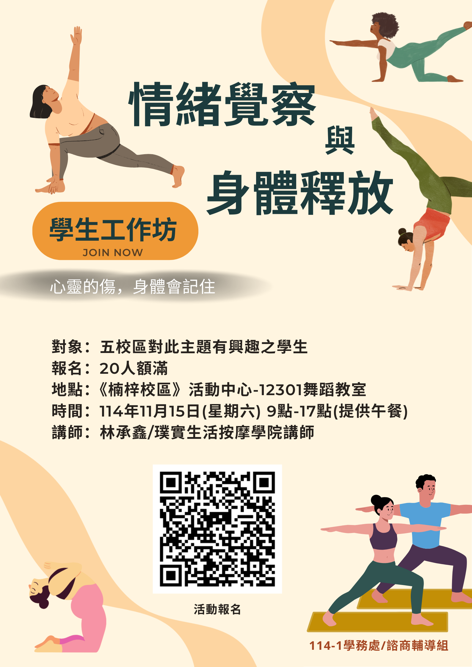 🔊🔊《楠梓校區》心靈的傷,身體會記住──情緒覺察與身體釋放工作坊~請連結活動表單報名