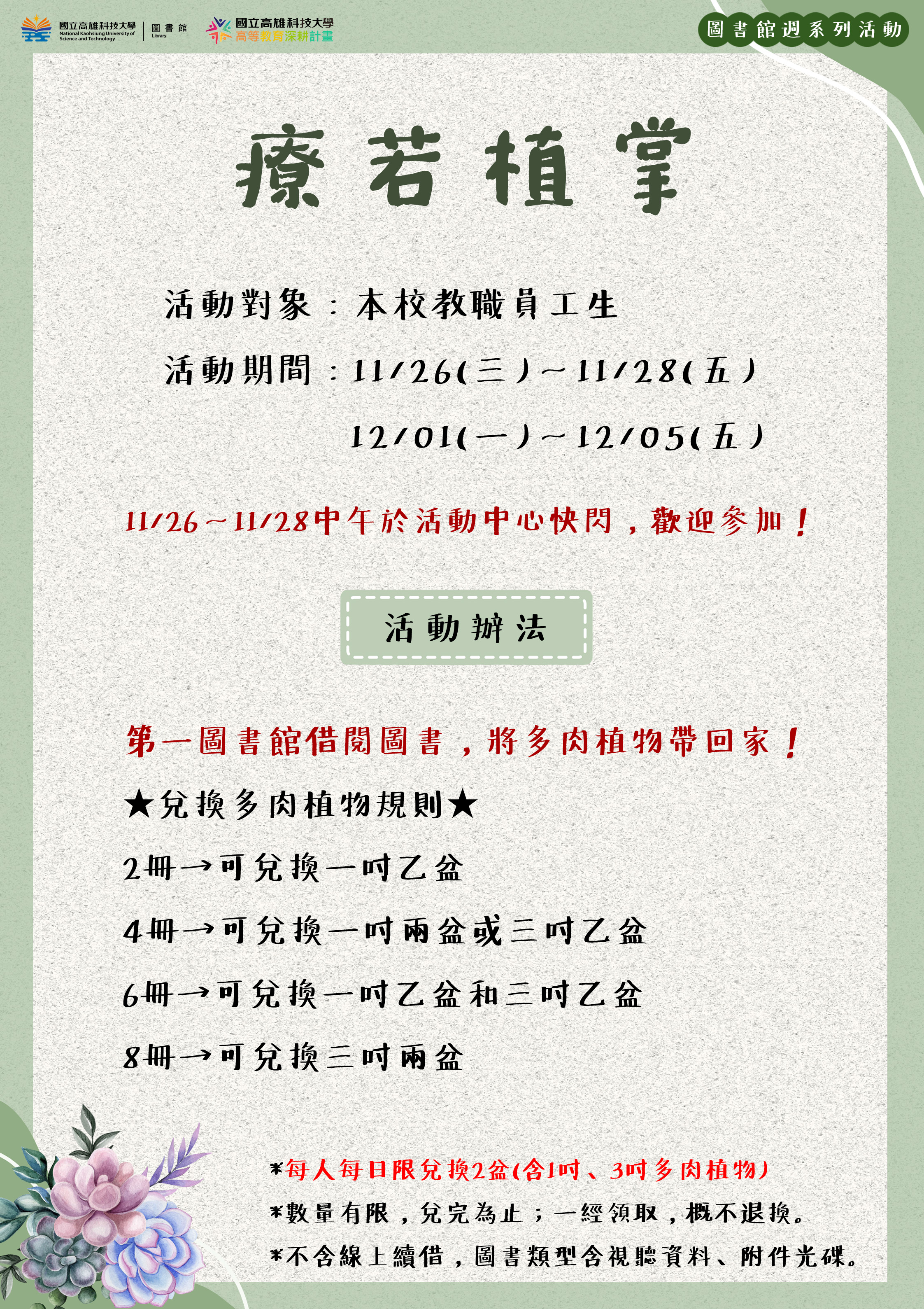 圖書館週系列閱讀推廣活動—療若植掌🌵