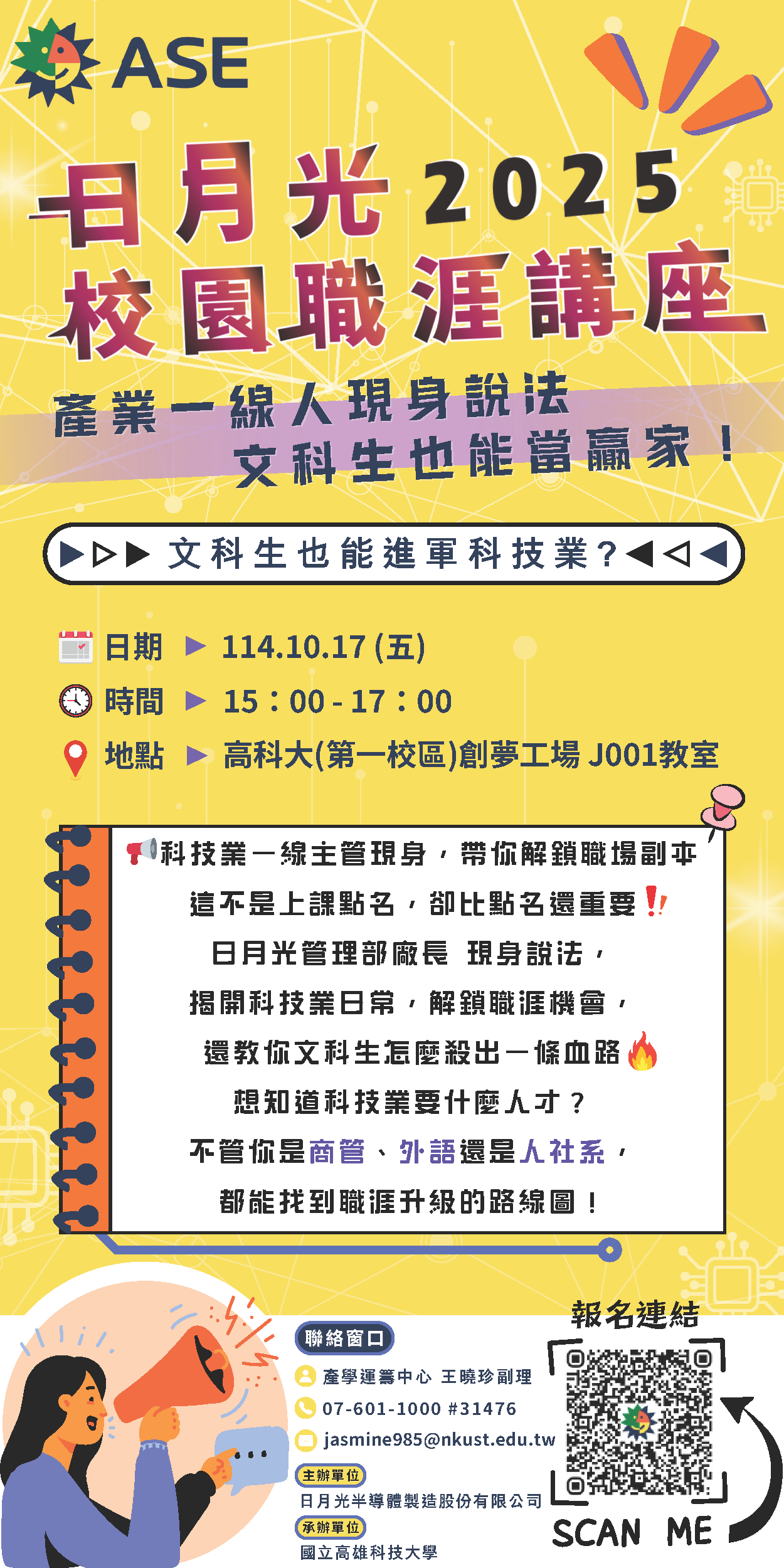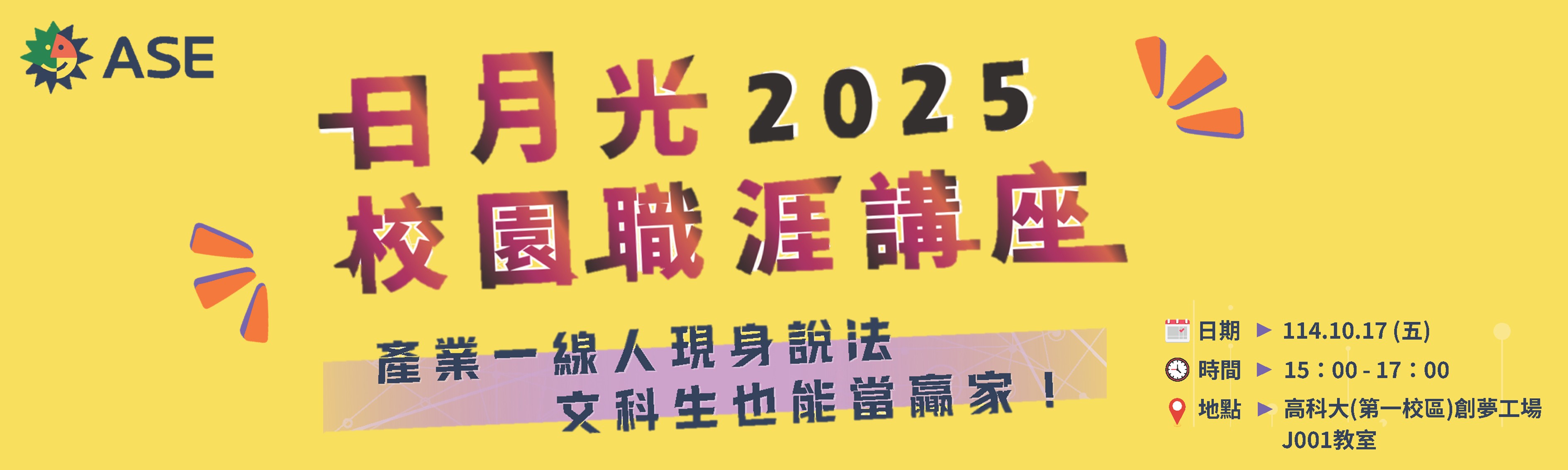 📢日月光 2025 校園職涯講座 (非理工科系場次) 產業一線人現身說法,文科生也能當贏家!!