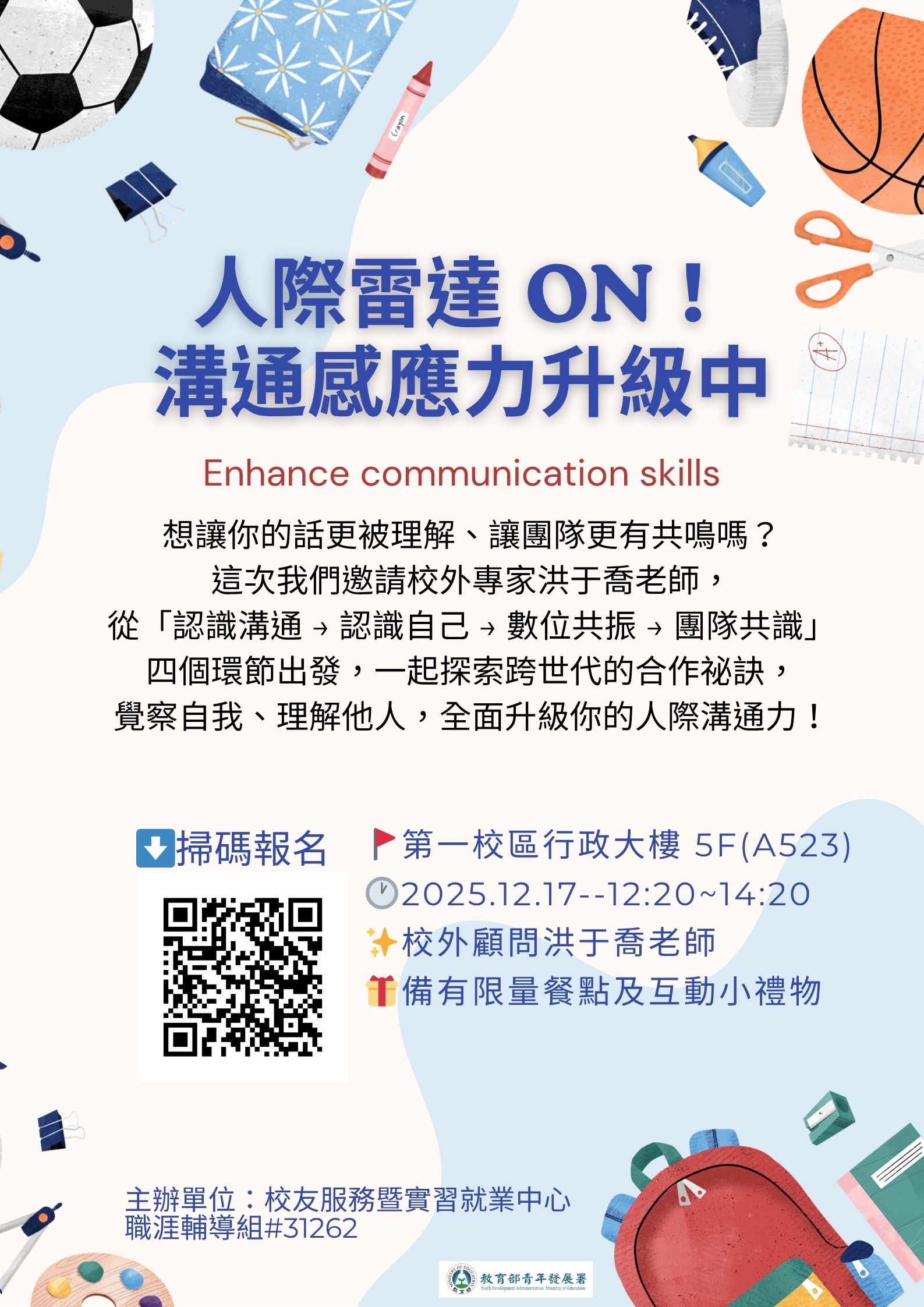 【職涯講座】人際雷達 ON!溝通感應力升級中(限量供餐)