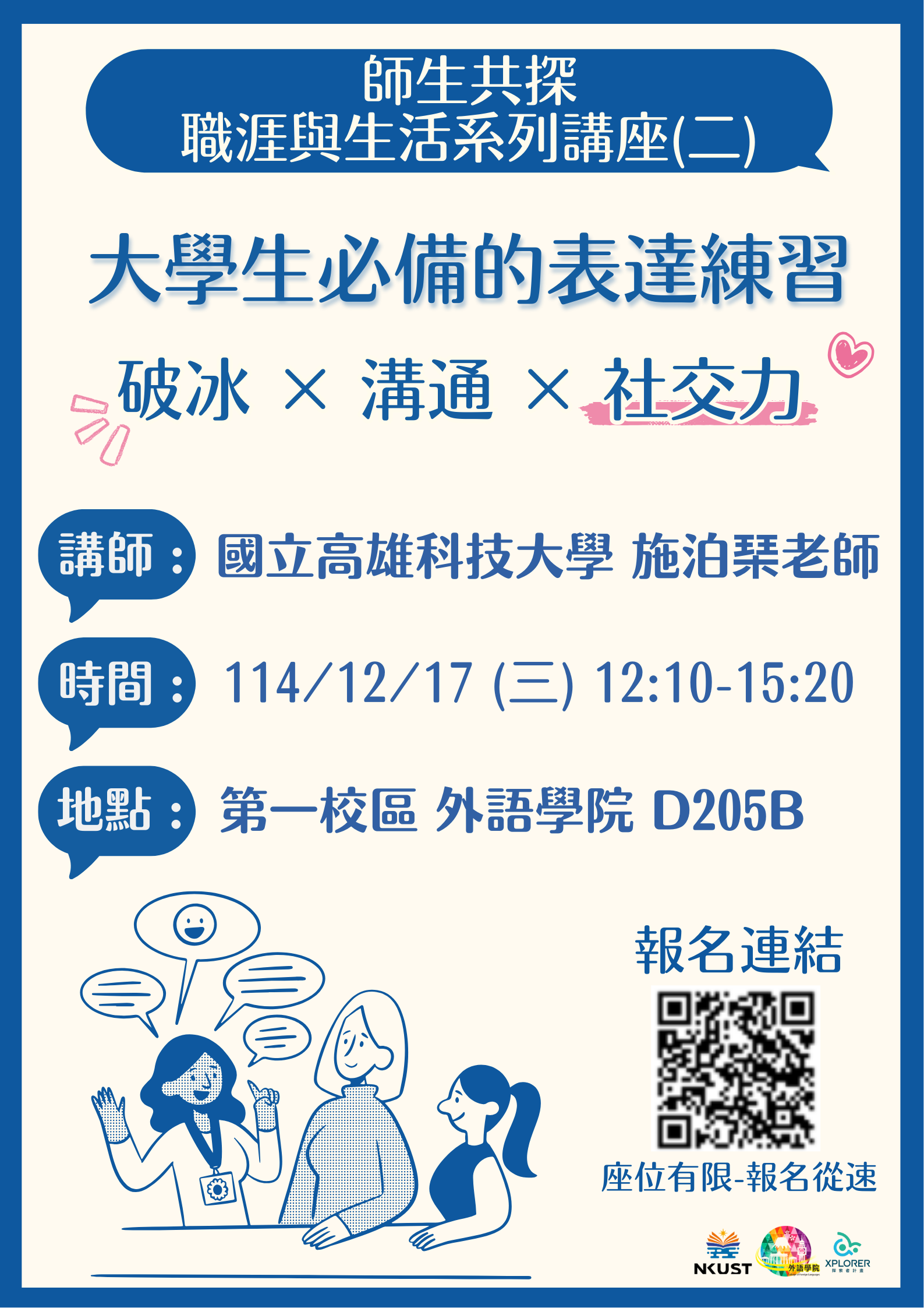 師生共探: 職涯與生活系列講座-大學生必備的表達練習:破冰 × 溝通 × 社交力