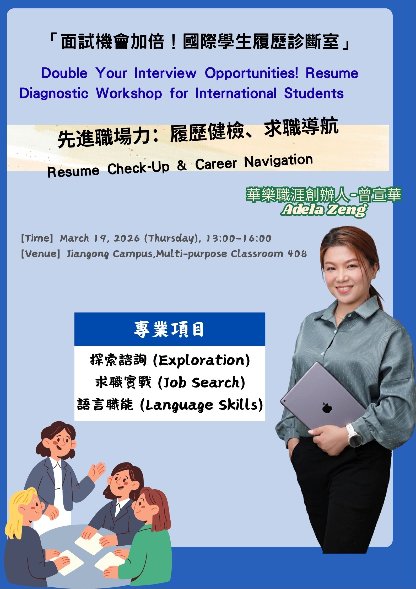 【職涯諮詢】「面試機會加倍!國際學生履歷診斷室」Double Your Interview Opportunities! Resume Diagnostic Workshop for International Students
