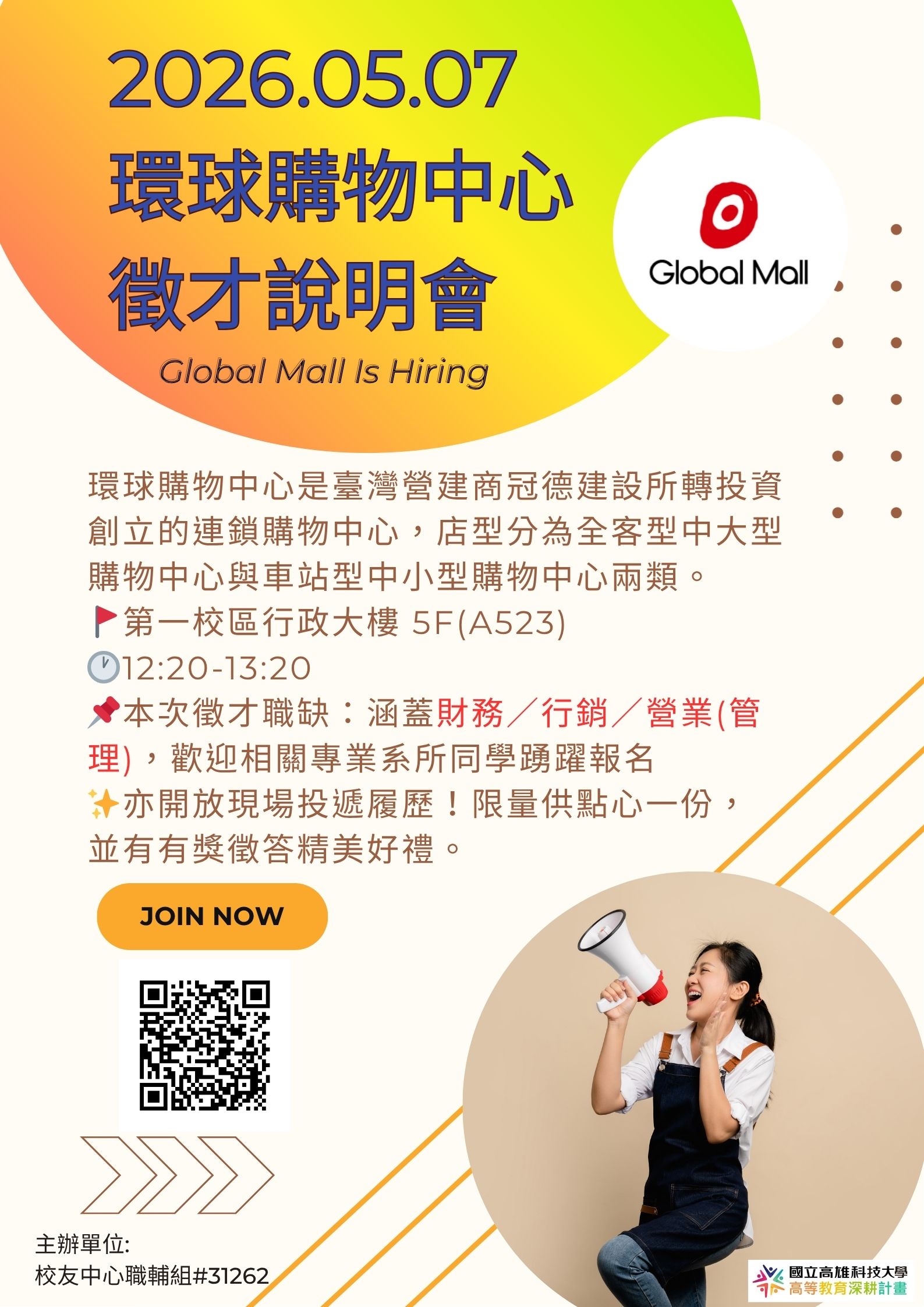 【徵才】環球購物中心徵才說明會(限量點心一份)