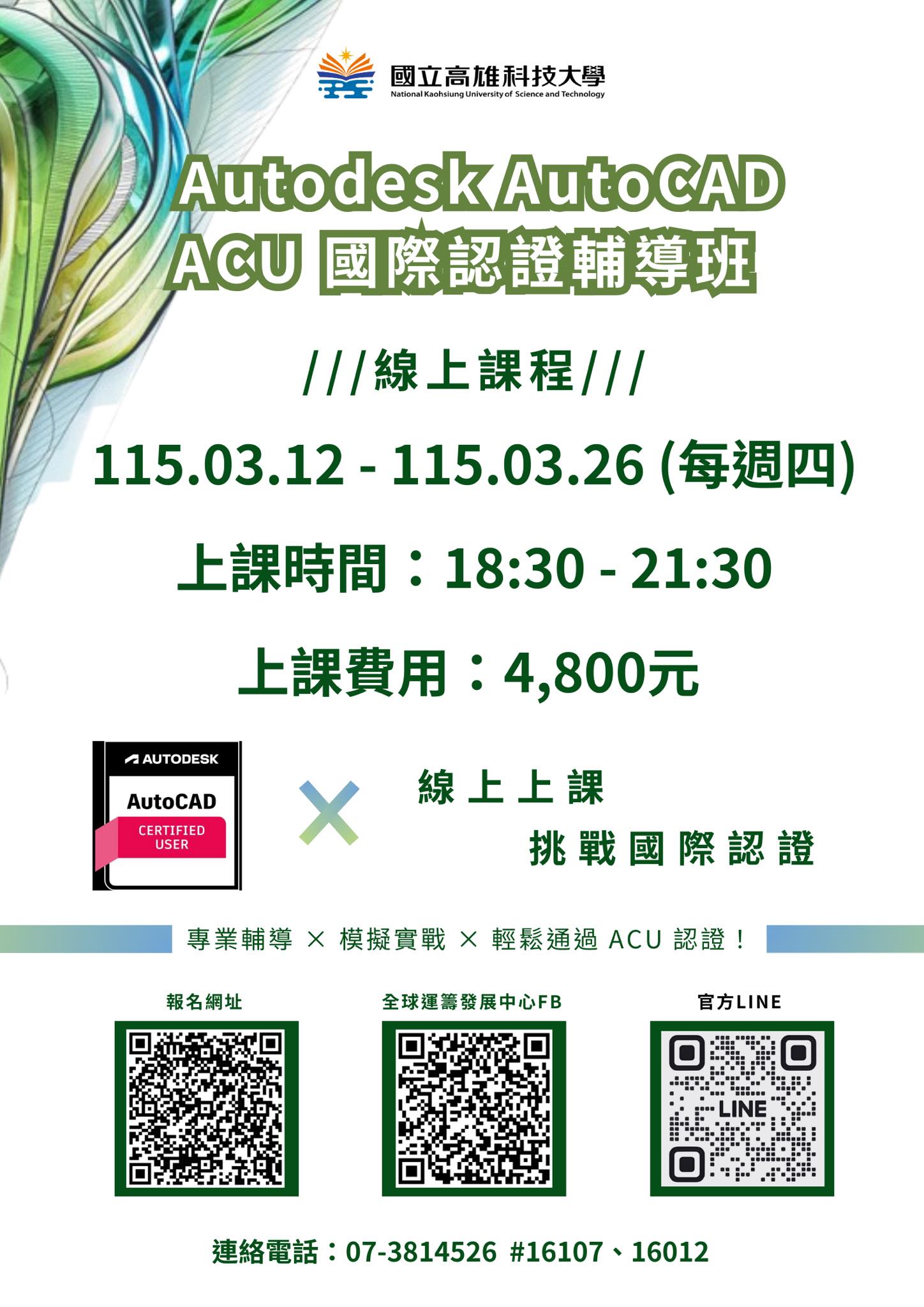 🚩 Autodesk AutoCAD ACU國際認證輔導班(線上課程)